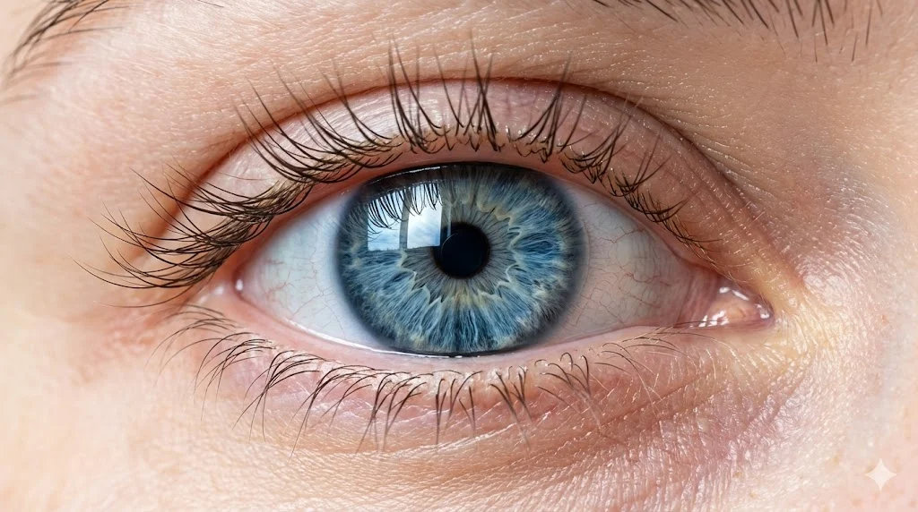 Здесь мы фокусируемся на микро-деталях радужки. Секретный токен: Ophthalmology photography style (стиль офтальмологической фотографии) — это жесткий триггер для нейросети, заставляющий её прорабатывать структуру глаза с медицинской точностью.
