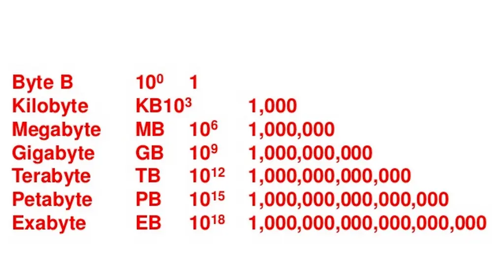 Большинство людей знакомы с мегабайтами (1 000 000 байт), гигабайтами (1 000 мегабайт) и даже терабайтами (1 000 гигабайт). (Кстати, вы можете увидеть разбивку всех терминов данных на этой диаграмме байтов).
