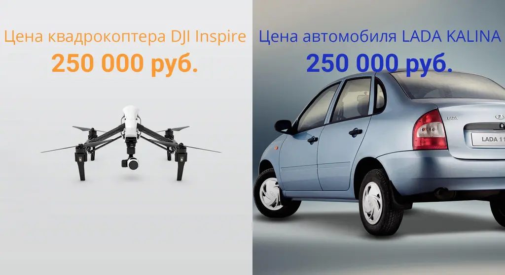 - Стоимость квадрокоптера DJI Inspire 1: много или мало