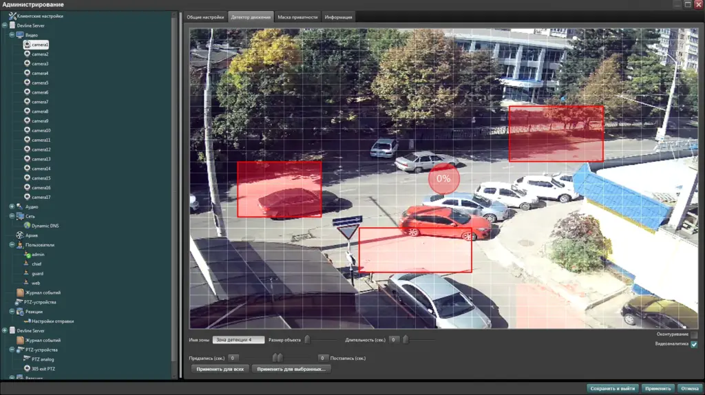 Данная функция актуальна не только для IP камер, но и для оборудования аналогового стандарта. Это позволяет снизить нагрузку в сети, серверный процессор также не перегружается и пользователь может работать без постоянных сбоев, как в случае с продуктами других производителей.