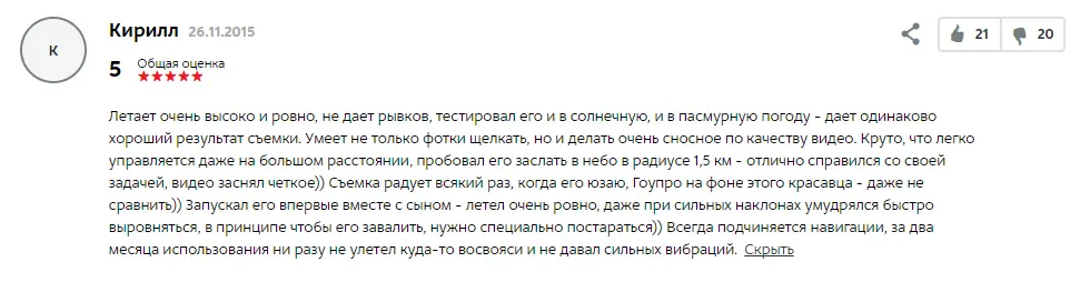 Чтобы понять как обстоят дела на практике, я предлагаю рассмотреть отзывы тех, кто уже приобрел себе один из этих коптеров.