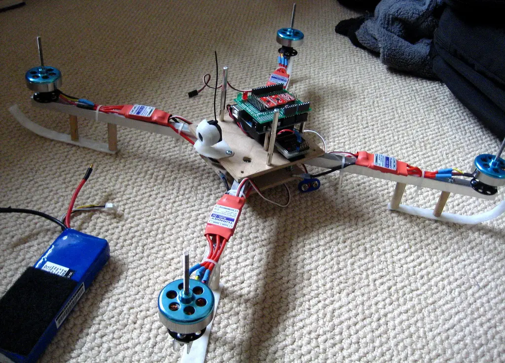 Ниже представлены фото, которые я нашел в интернете. На них представлены квадрокоптеры с камерой, которые были собраны своими руками из подручных средств.